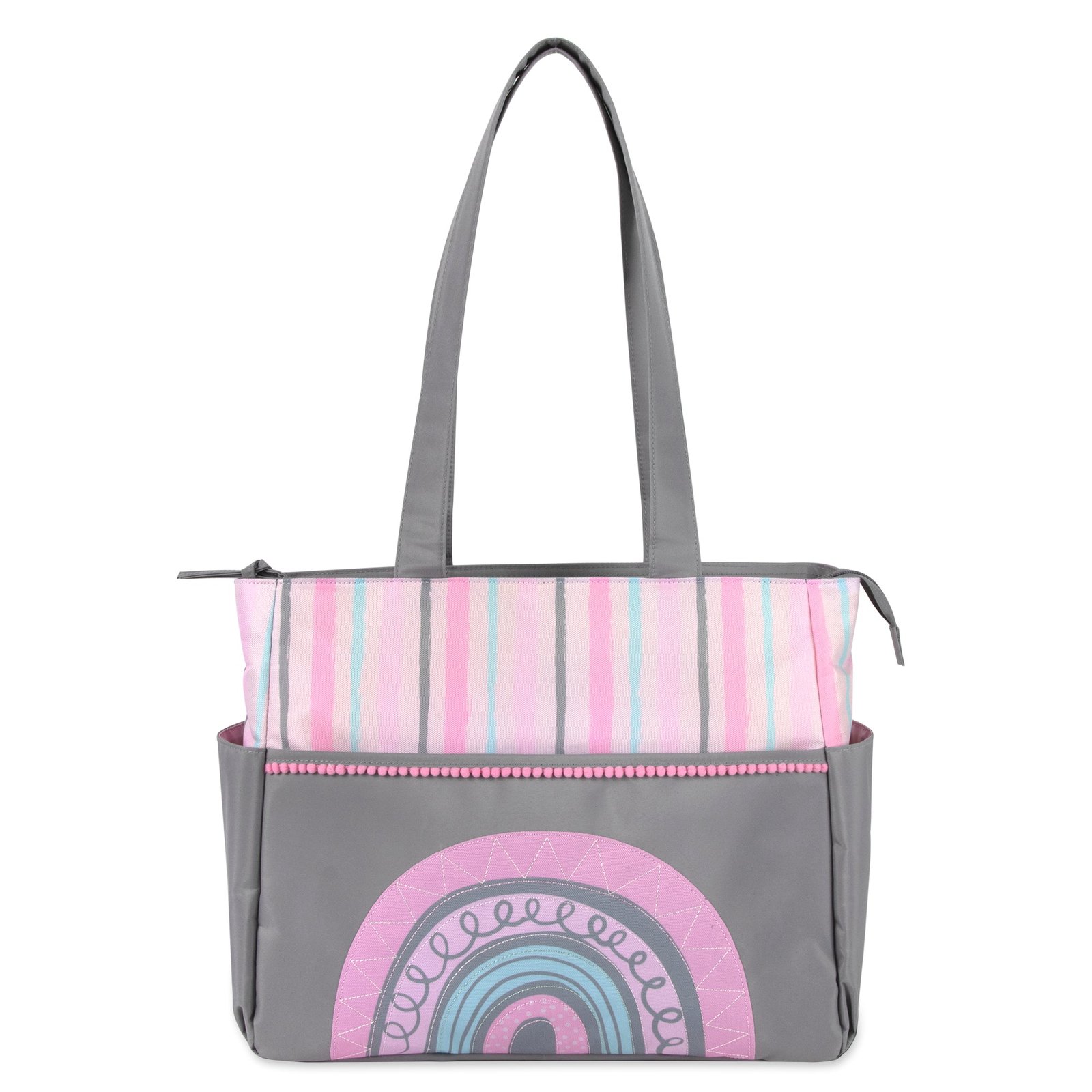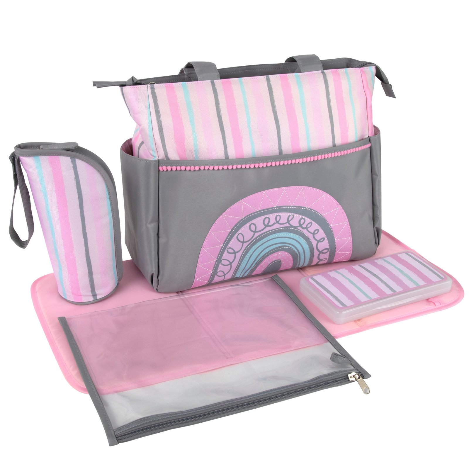 Baby Essentials Diaper Bag Tote 5-Piece Set – Pink Rainbow Themed