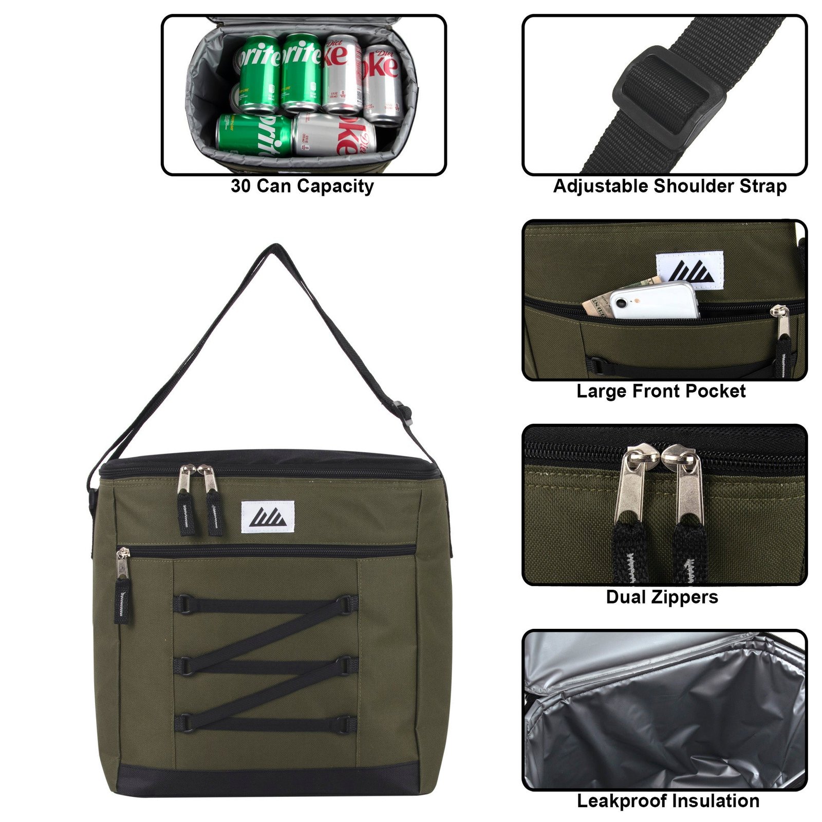 Our Fridge Pak 30 Can Cooler Bag will keep all your drinks and snacks cool while on the go. This cooler is fully lined with PEVA lining, which means your items stay cooler much longer. This cooler also features a zippered front accessory pocket. Perfect for your utensils, keys or cell phone. This is the ideal cooler bag for any occasion, offers plenty of space and can hold up to 30 cans!