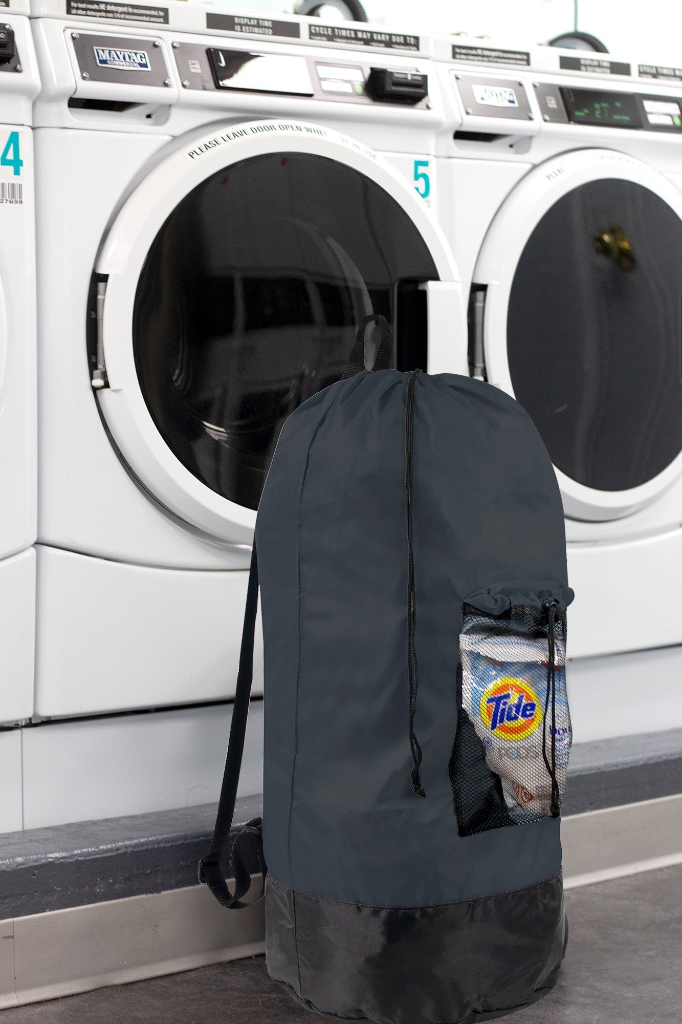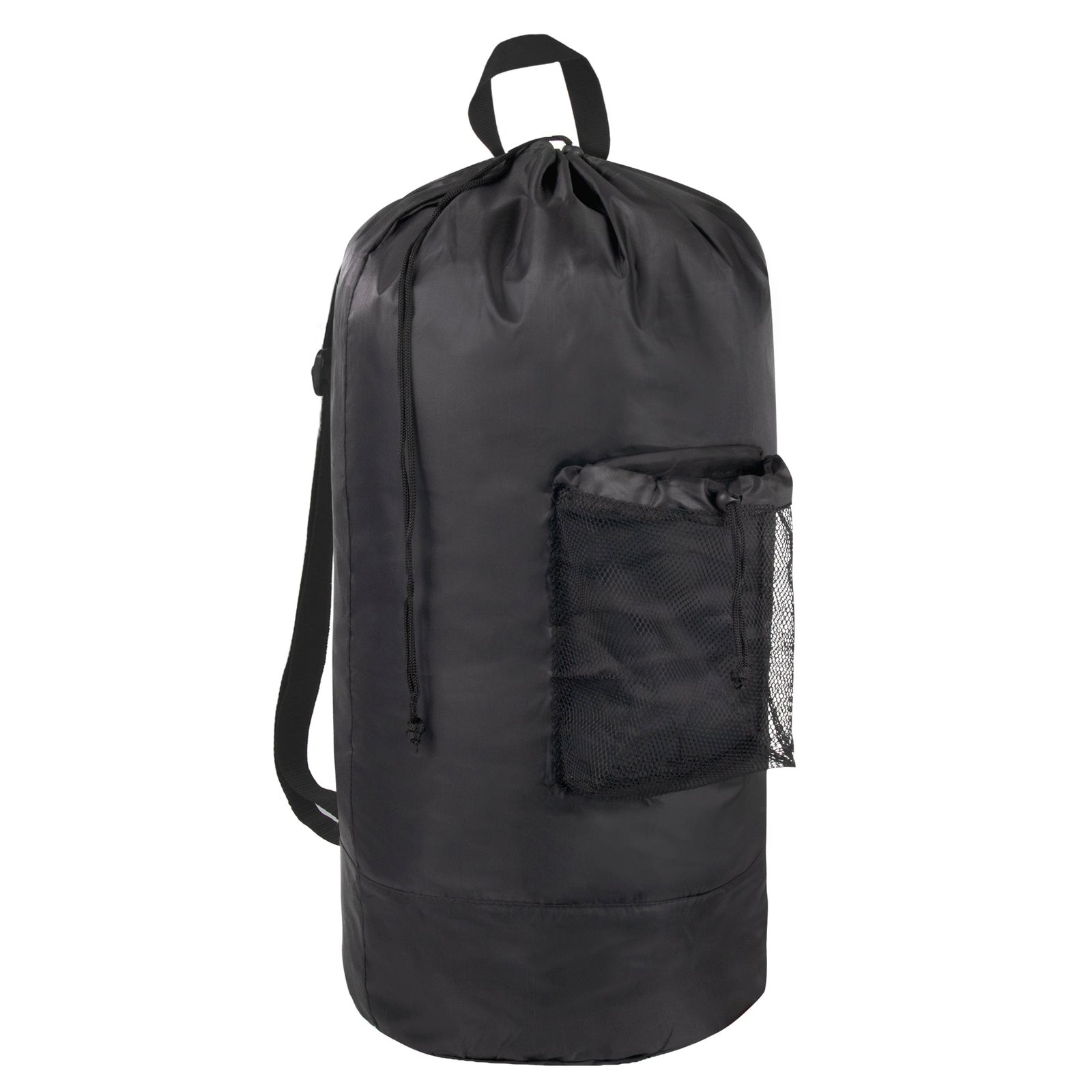 Laundry Bag Backpack with Front Mesh Pocket – Black